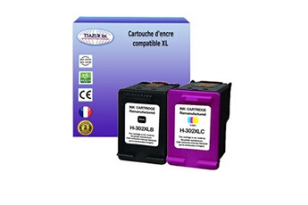 Lot de 2 cartouches jet d'encre noirs (15 Ml) et couleurs (21 Ml) compatible pour HP 302XL, DeskJet 3636 3639 2136 - -