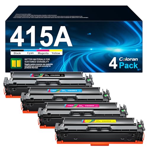Coloran 415A 415 (avec Puce) Cartouche de Toner Compatible pour HP W2030A W2031A W2032A pour Color Laserjet Pro MFP M454 M454dw M454dn M479fdw M479 M479dw M479fnw (4 Pack)