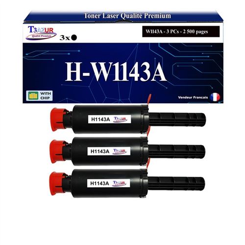 T3AZUR -3x Toners compatibles avec HP W1143A (143A) pour HP Neverstop Laser 1001nw, Neverstop Laser MFP 1201n, 1202nw, 1202w