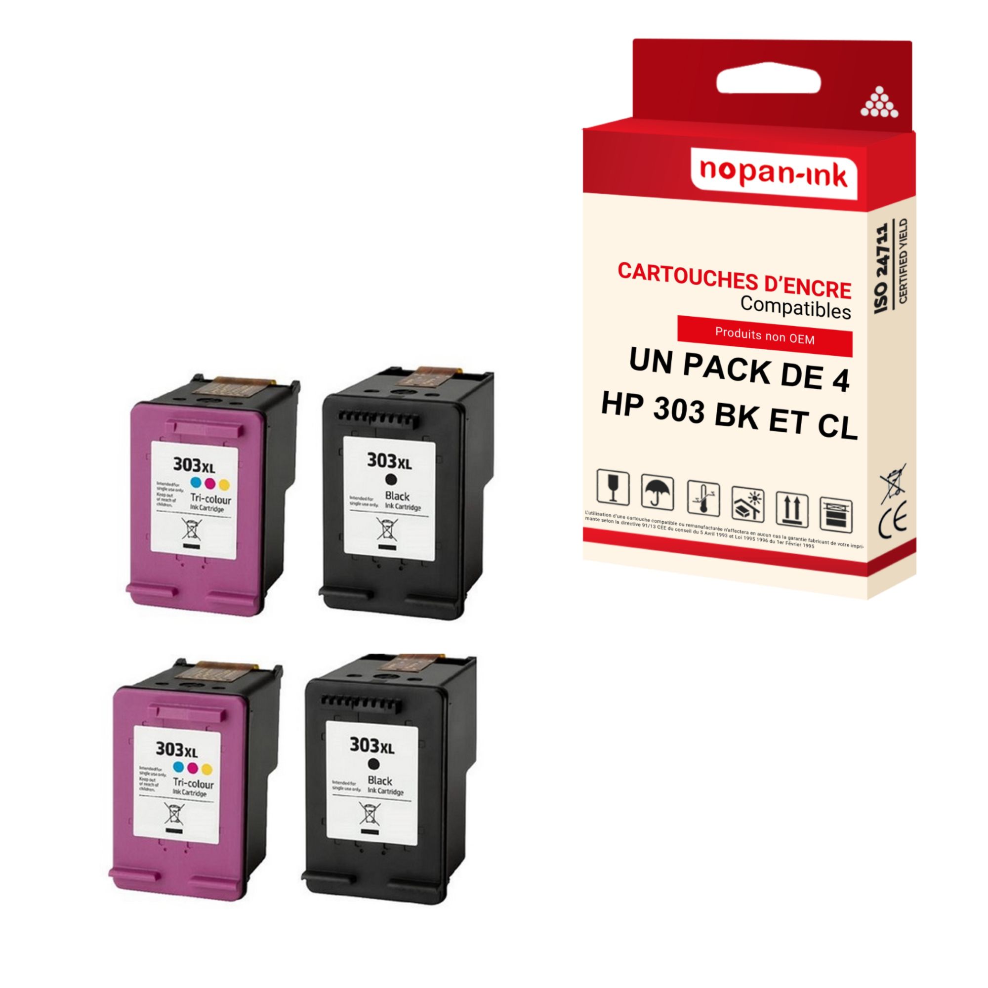 NOPAN-INK - x4 Cartouches compatibles pour HP 303 XL (x2) + 303CL XL (x2) 303XL (x2) + 303CLXL (x2) Noir + Cyan + Magenta + Jaune pour HP Tango Envy P