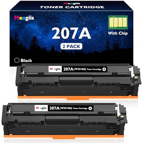 Meagiis 207A Noir W2210A avec Puce Cartouche de Toner Compatible pour HP 207A 207X Noir Toner pour HP Color LaserJet Pro MFP M283fdw M255dw M282nw M283fdn M255nw (2 Pack)