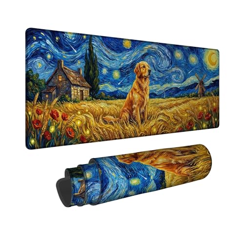 Grand tapis de souris de jeu, motif retriever bleu doré, bords cousus, caoutchouc antidérapant, lavable, pour la maison et le bureau, 40,6 x 91,4 cm