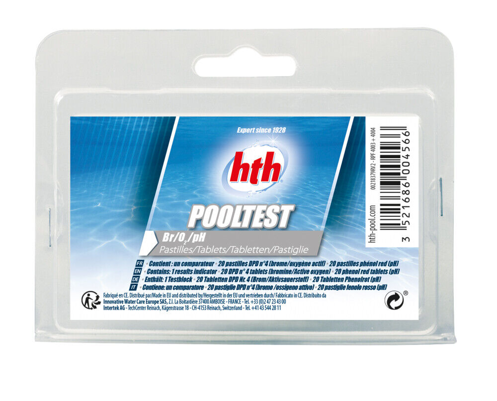 HTH POOLTESTER O2/Br/pH - Pastilles | Trousse Analyse Oxygène Actif / Brome / pH