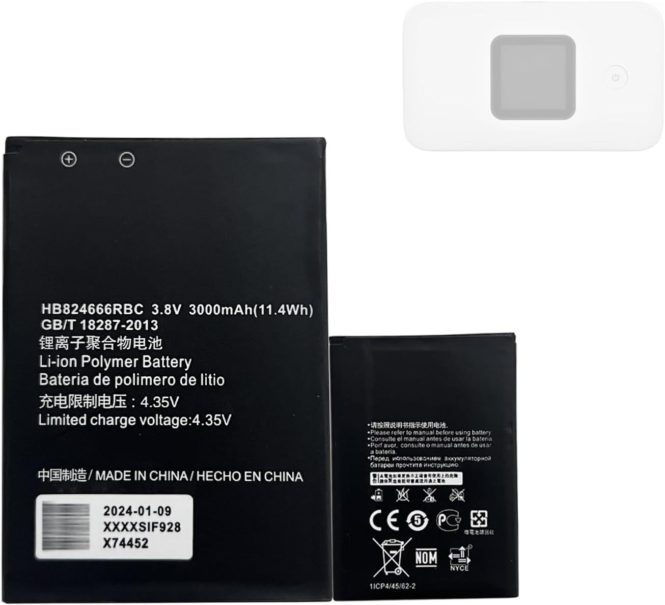 Battery 3000mAh 3.8V Compatible with Huawei Router Portable E5577 E5783-836 E5785 E5787 Mobile WiFi Hotspot Modem Mobile W-LAN HB824666RBC Rechargeable Li-ION Battery