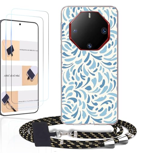 WUACYEAMING Coque pour Huawei Mate 60 RS Ultimate,avec Cordon & 2 Verre Trempé,Transparent Coque Collier Réglable Téléphone Étui Portable Lanyard Case Motifs ornementaux