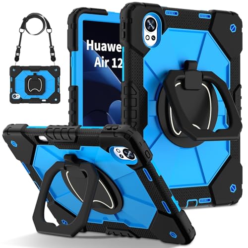 ADVDJBV Compatible with Huawei Matepad 12X (2024) Case Built-in Pencil Holder Rugged Shockproof Cover,Protective W 360 Swivel Kickstand+Hand Strap+Shoulder(Blue 3)