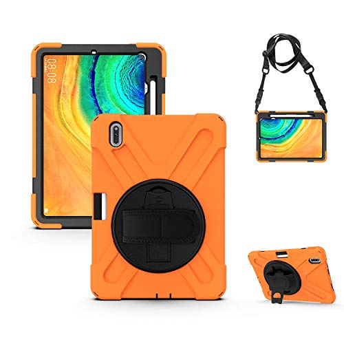 KUSEZJK Étui Compatible avec Huawei Matepad Pro 10.8 2019, Coque de Protection Antichoc Robuste avec Béquille/Bandoulière de Main/Bandoulière/Porte-Crayon (Orange)
