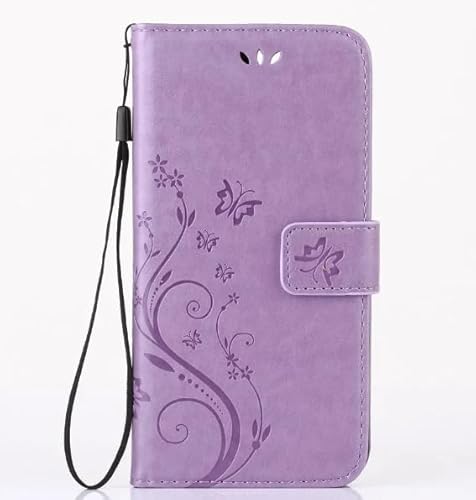Générique Étui Portefeuille en Cuir PU pour Huawei P Smart 2019, Motif Papillon et Fleurs, Violet, Fonction Support, Emplacements Cartes (Violet Clair, iPhone SE)