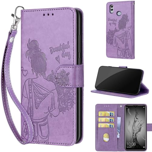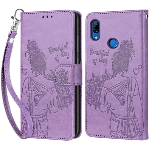 PONRFEKT Étui pour Huawei P Smart Z / Y9 Prime 2019 Coque,Housse en Cuir PU avec Fentes pour Cartes et Support,Coque de Protection Antichoc à Rabat-Violet Clair