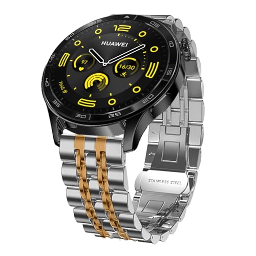 Hinnwer 22mm Bracelets en Métal pour Huawei Watch GT 6 46mm/GT 6 Pro 46mm/5/GT5 Pro/GT5/GT4/4 46mm Acier Inoxydable Bracelet Remplacement pour Huawei Watch Ultimate 2 - Argent+Or