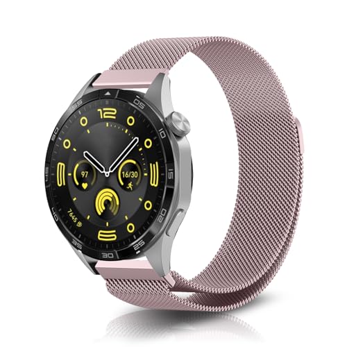 NicMool 22MM Métal Bracelet Compatible avec Huawei Watch GT 6/6 Pro/5/5 Pro/4/3/2/1 46mm, Hommes et Femmes Bracelet Magnétique en Acier Inoxydable Tissé pour Huawei Watch Ultimate 2 - Rose