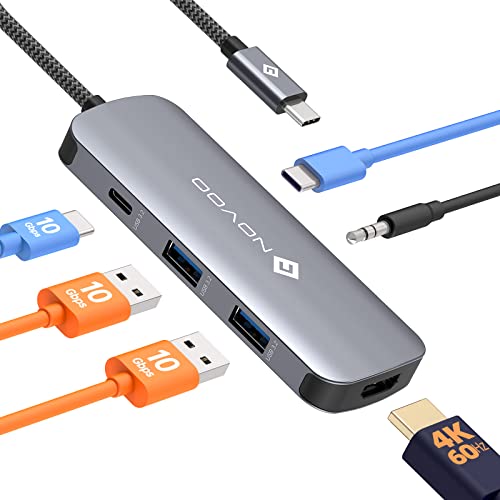 NOVOO Hub USB C multiport USB C vers USB 3.2 x 2, Charge PD 100 W, Ports de données HDMI 4K à 60 Hz et USB-C 3.2 10 Gbit/s, Audio 3,5 mm, Adaptateur USB-C 6 en 1 Compatible avec MacBook Pro, Air et