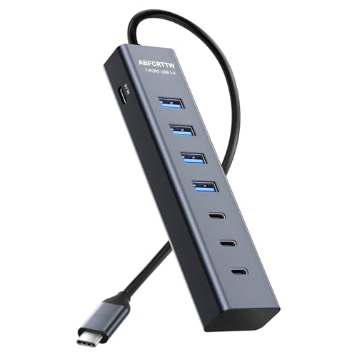 Adaptateur USB C vers USB, Aluminium 7-in-1 Adaptateur Multiport Hub USB C avec 4 USB-A & 3USB-C, pour MacBook Pro/Air, Laptop, iPad, iMac, Phone