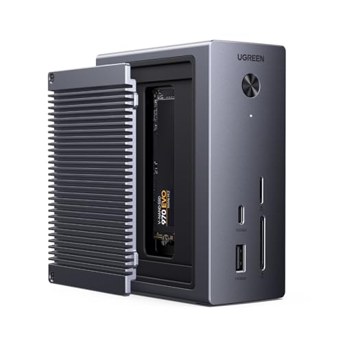 UGREEN Station d'accueil et Support pour Mac Mini M4 et M4 Pro Docking Station Hub USB C avec Boîtier M.2 NVME SSD DisplayPort 4K 240Hz 144Hz 5 USB 3.2 4A1C 10Gbps Fente SD TF 3.5mm Aux