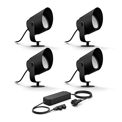 Philips Hue White & Color Ambiance Lily Garden Spot Standard 40 W (590 lm), Lumière Extérieure Dimmable, Contrôle intelligent avec la voix ou application, Noir, Pack de 4