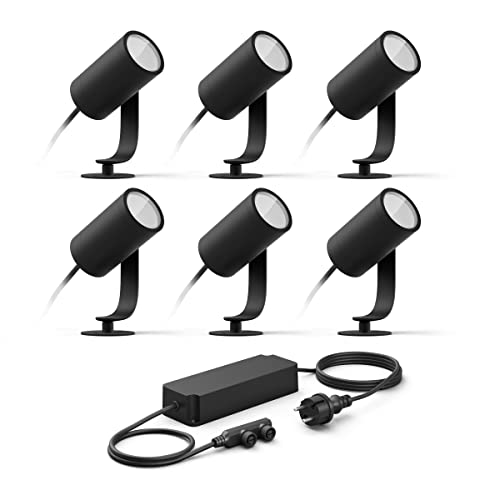Philips Hue Lily Kit de base avec 6 spots de jardin (anthracite) - Lumière blanche et colorée - Comprend 1 câble d'alimentation - Éclairage de jardin - Hue White and Color Ambiance