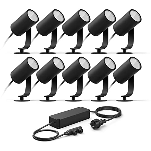 Philips Hue Lily Kit de base avec 10 spots de jardin (anthracite) - Lumière blanche et colorée - Comprend 1 câble d'alimentation - Éclairage de jardin - Hue White and Color Ambiance