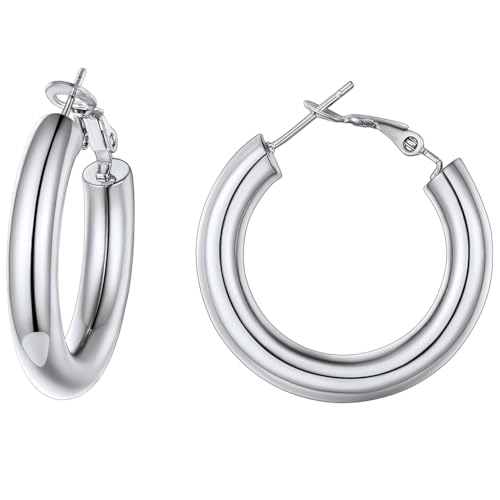 Guess JUBE01192JWRHT/U Rhodium Plated 30mm Huggie Hoops Jewellery