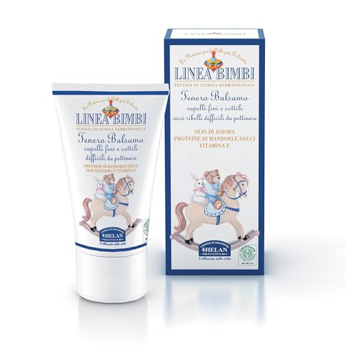 Helan, Linea Bimbi - Après-shampoing pour cheveux bouclés et difficiles à coiffer - Pour enfants - Pour cheveux fins et fins - Avec huile d'amande et huile de jojoba - Sans paraben ni silicone