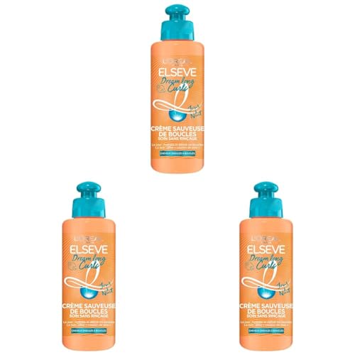 L'Oréal Paris Elsève - Crème Sauveuse De Boucles - Soin Cheveux Sans Rinçage - Enrichi En Huile De Ricin Et Glycérine Végétale - Pour Cheveux Ondulés À Bouclés - 200 Ml (Lot de 3)