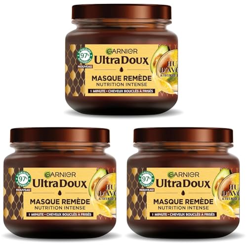 Garnier Ultra Doux - Masque Remède Nutrition Intense - Huile d'Avocat & Beurre de Karité - Pour Cheveux très Secs Bouclés ou Frisés - Sans Parabène - 340 ml (Lot de 3)