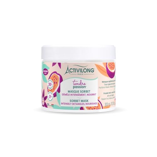 ACTIVILONG - Masque Sorbet Tendre Passion - Cheveux Ondulés, Bouclés, Frisés et Crépus - 98% d'ingrédients d'origine naturelle - Sans Silicone - Sans Huile Minérale - Made in France - 300 ml