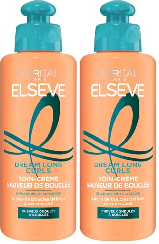 L'Oréal Paris Elsève - Crème Sauveuse De Boucles - Soin Cheveux Sans Rinçage - Enrichi En Huile De Ricin Et Glycérine Végétale - Pour Cheveux Ondulés À Bouclés - 200 Ml (Lot de 2)