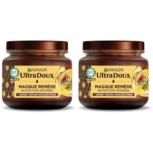 Garnier Ultra Doux - Masque Remède Nutrition Intense - Huile d'Avocat & Beurre de Karité - Pour Cheveux très Secs Bouclés ou Frisés - Sans Parabène - 340 ml (Lot de 2)