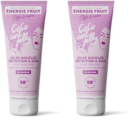 ENERGIE FRUIT | Gelée soin & définition coco curl sans rincage | Cheveux ondulés & bouclés | Huile de coco BIO| 200ML (Lot de 2)