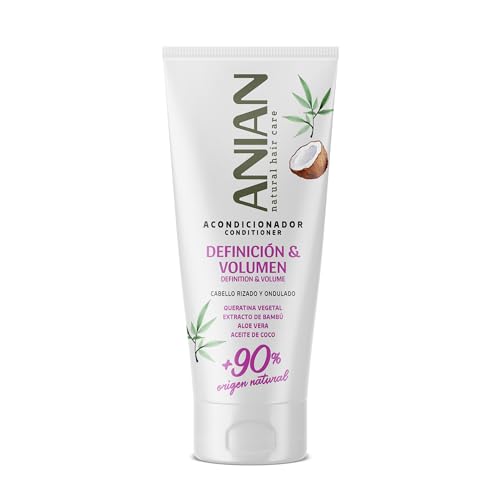 ANIAN - Après-shampoing Définition et Volume, 250 ml, pour cheveux bouclés et ondulés, facilite le coiffage et évite les tractions, contrôle les frisottis, avec kératine, huile de noix de coco et aloe