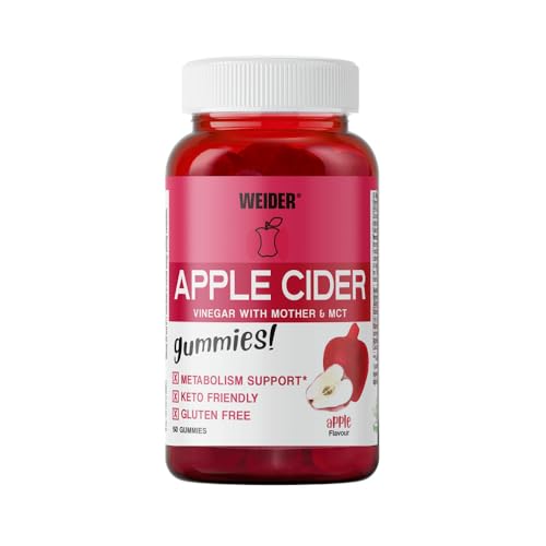 Weider Apple Cider Vinegar Gummies – avec vinaigre de cidre de pomme + huile de coco – goût pomme - vitamines B6, B9, B12 – améliore le métabolisme – keto – vegan – 50 gummies