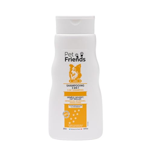 Pet Friends - Shampooing 3 en 1 pour Chiens - Démêle Nourrit et Fait Briller le Pelage - Huile d'Amande Douce - 95% d'Ingrédients d'Origine Naturelle - Toutes Races - 250 ml