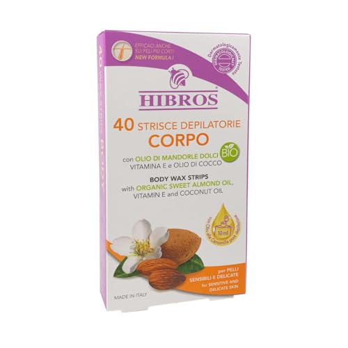 Hibros 40 Bandes de Cire – Jambes, Bras, Aisselles – Élimination des Poils Vitamine E – Beurre de Karité – Huile de Coco Huile d’Amande Douce – Lingettes Nettoyantes Post-Épilation Peaux Sensibles