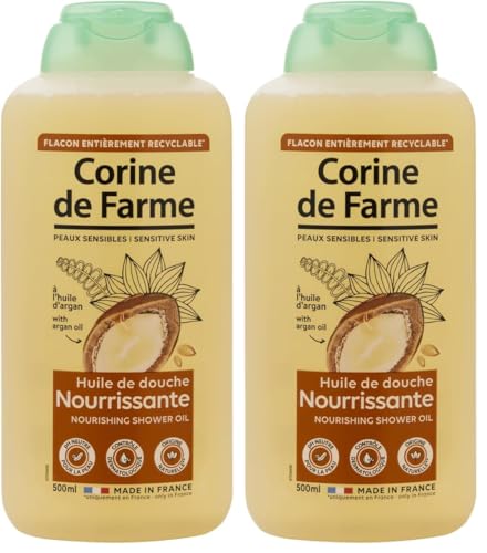 Corine de Farme - Huile de Douche Nourrissante à l’Huile d’Argan - Peaux Sèches à Très Sèches - Hydratation Intense & Protection Anti-Dessèchement - 92% d’Ingrédients Naturels - 500 ml (Lot de 2)