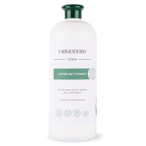 Farmoderm Gel Douche Antibactérien au Thym & l'huile de Théier (1L) - Nettoyant corporel quotidien pH neutre pour personnes âgées, incontinentes, handicapées - Peaux sensibles, sèches et qui démangent