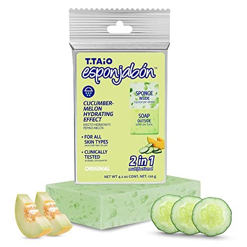 T.Taio Esponjabon Éponge de savon à l'aloe vera – Brosse de douche douce – Nettoyage du bain – Élimination de la saleté et de l'huile