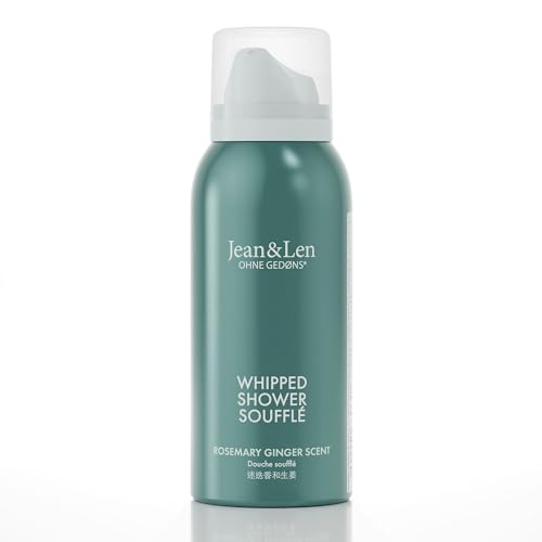 Jean & Len Shower Soufflé Rosemary & Ginger, à l'huile d'amande et de jojoba, pour une expérience de nettoyage parfumée, mousse de douche en format de voyage, sans parabènes & silicones, 75 ml