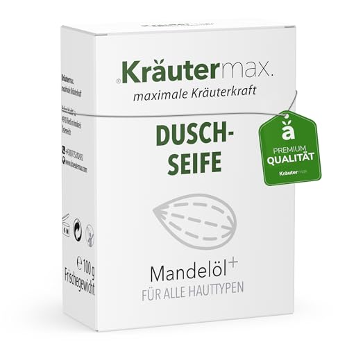 Kräutermax Savon de douche à l'huile d'amande pour homme et femme – Gel douche solide cosmétique naturel – Également comme shampoing solide 2 en 1 – Savon naturel 1 x 100 g