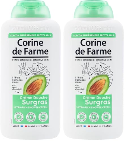 Corine de Farme - Crème Douche Surgras à l'Huile d'Amande Douce - pH Neutre, Origine Naturelle - Contrôle Dermatologique - Fabrication 100% Française - 500ml (Lot de 2)