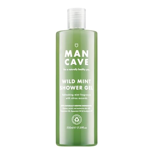 ManCave Gel Douche Menthe Sauvage - Gel Douche Hommes 500 ml, Arôme Énergisant et Frais de Citron, Menthe Poivrée et Huile d'Eucalyptus, Naturel avec L-Arginine, Sans Sulfate ni Parabène, Vegan