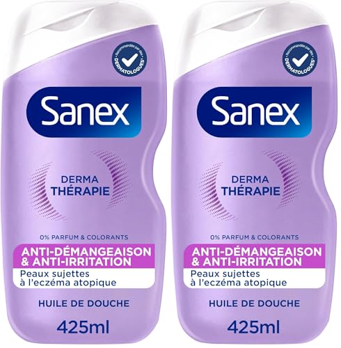 SANEX-Derma Thérapie-Huile de douche anti-démangeaisons et anti-irritations pour les peaux sujettes à l’eczéma atopique-moins d' irritations après 3 jours d'utilisation-complexe d’acides aminés-425 ML