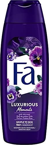 Fa, Gel Douche et Bain Corps, Luxurious Moments, Sensation peau douce, Formule a l'huile, Parfum Violette rose, Formule Vegane, Bouteille de 750 ml
