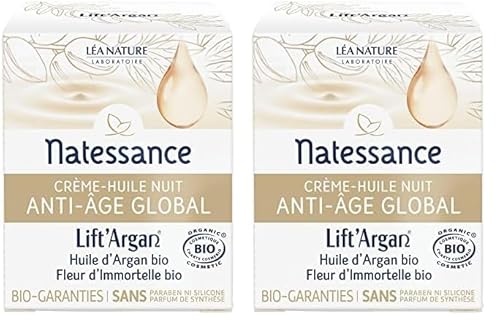 Natessance | Crème-Huile Nuit Anti-Âge Global – Lift’Argan | Lutte contre le vieillissement cutané : rides, fermeté, éclat | Tous types de peaux | 98% d’origine naturelle| Certifié Bio |50 ml