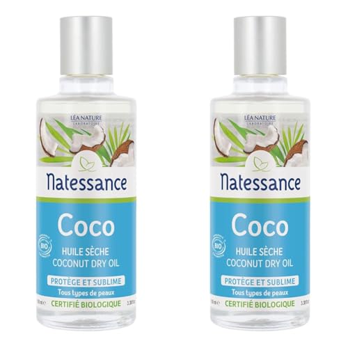Natessance - Huile Sèche Coco Bio - Protège et sublime - Certifié Bio Cosmos Organic - Flacon de 100 ml (Lot de 2)