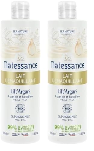 Natessance | Lait Démaquillant – Lift’Argan | Élimine Maquillage et Impuretés | Huile d’Argan Bio | Visage - Yeux | Tous types de peaux | Certifié Bio | 99% d’origine naturelle | 400 ml (Lot de 2)