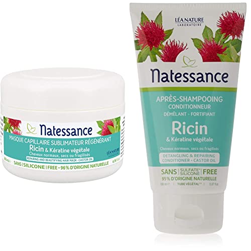 Natessance Capillaire Masque À L'huile de Ricin et Kératine Végétale 200 ml & Capillaire Après-shampooing Conditionneur À L'huile de Ricin et Kératine Végétale 150 ml