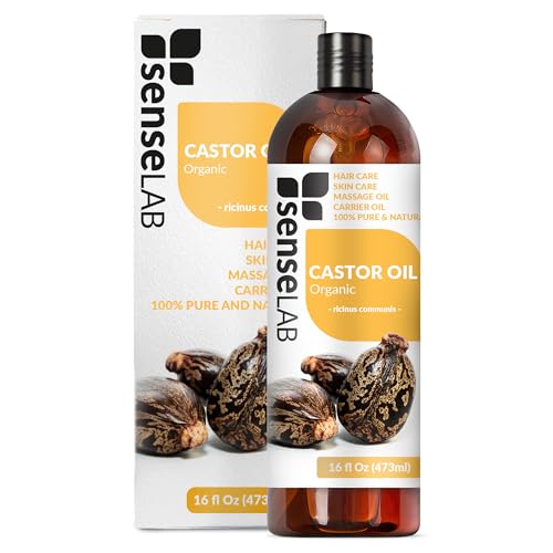 SenseLAB Huile de ricin biologique - Huile de support naturelle 100% pure, pressée à froid, pour mélanges d'huiles essentielles - Soin des cheveux, des sourcils et des cils (473 ml)