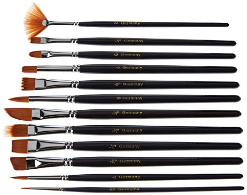Haute Qualité 9 pinceaux de pinceaux pointus – pour cheveux Aquarelle, acrylique et huile – Nylon – AL11