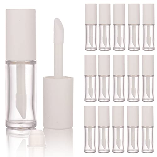 COSIDEA Lot de 15 tubes vides en PETG pour gloss à lèvres - 10 ml - Blanc - Avec pinceau épais - Applicateur pour huile de ricin, teinture, correcteur
