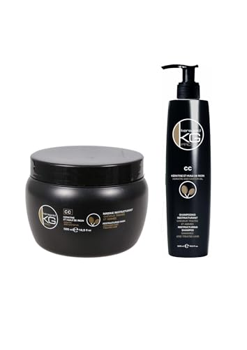 KERAGOLD PRO CC – Lot de 2 Soins Capillaires – Shampoing 500ml + Masque 500ml – Kératine & Huile de Ricin pour Fortification et Croissance des Cheveux